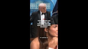 President Donald Trump makes an announcement following a security incident at White House Correspondents’ Association Dinner, where he and first lady Melania Trump were rushed away by Secret Service agents when loud bangs were heard. About an hour after Trump was rushed from the event, he posted on Truth Social that a “shooter had been apprehended.”