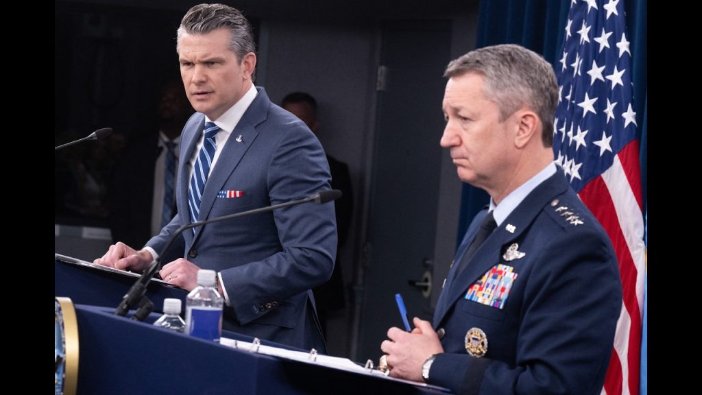 Defense Secretary Pete Hegseth and Joint Chiefs Chairman Gen. Dan Caine are speaking to reporters Friday morning about the latest updates on the war in Iran. President Trump on Thursday announced he ordered the Navy to “shoot and kill” any boats laying mines in the Strait of Hormuz.