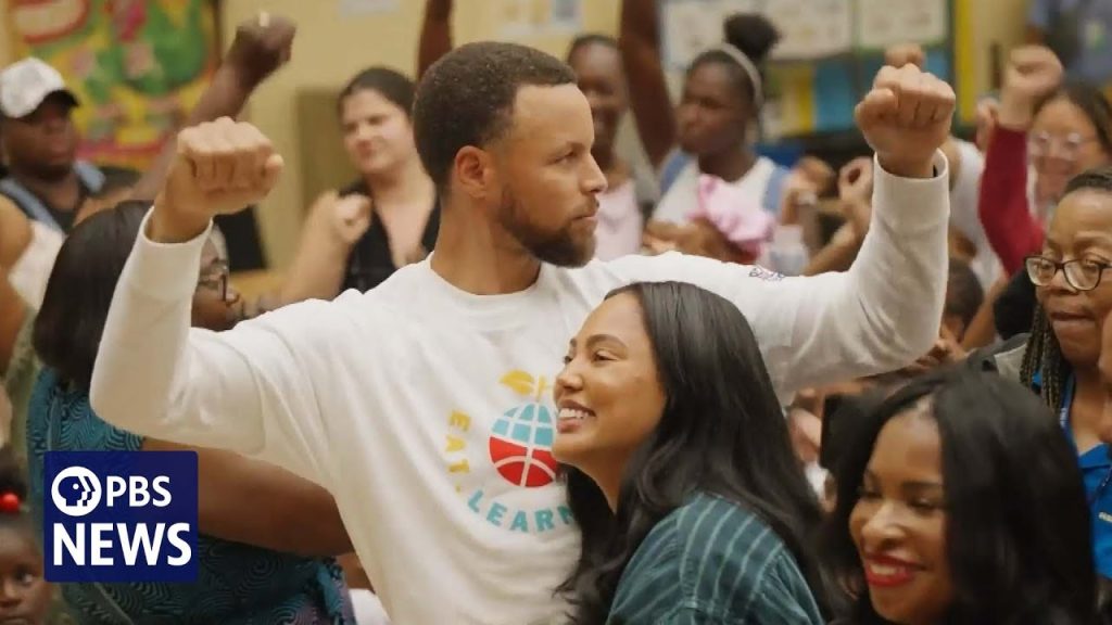 NBA superstar Steph Curry and his wife, Ayesha, are co-founders of “Eat. Learn. Play.,” an initiative to support children in Oakland, California, with high-quality nutrition, reading resources and active play. Their work reveals people at their best, Steph Curry told PBS News’ Judy Woodruff.